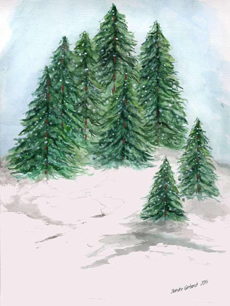 My favorite medium is water colors. I also enjoy mixed media and pen and ink. Here are a few of my water colors over the years which I have used in holiday cards and for gifts.