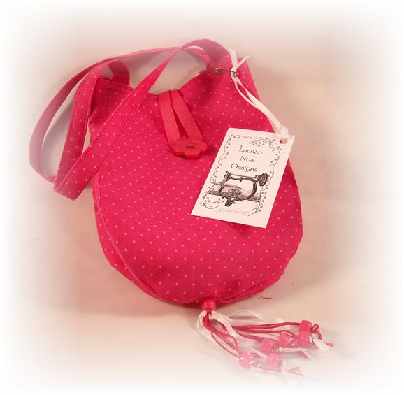 Lochán Nua is the brand for the small bags and accessories that I started creating several years ago. I decided on using a Gaelic name for New Pond, the street I live on that overlooks a small pond. Loch is the Scottish Gaelic, Scots and Irish word for a lake or sea inlet and lochán is the word for small pond. This page incudes just some of the bags and other wearable fabric art that I enjoy making.
